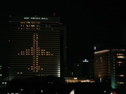 神戸空港の開港まであと4日。島のホテルには飛行機型の模様も現れて歓迎ムード。 この飛行機、照明の仕方も凝っている。機首の作りに注目。 宿泊客は夜は窓を開けられないのだろうか? 空港建設に際しては賛否両論あって本当にこんなに早く完成するとは思い…